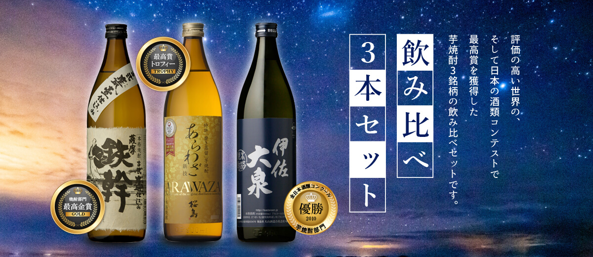 本場鹿児島の芋焼酎を中心に、麦焼酎・米焼酎・黒糖焼酎など1000銘柄の商品を取り揃えています。