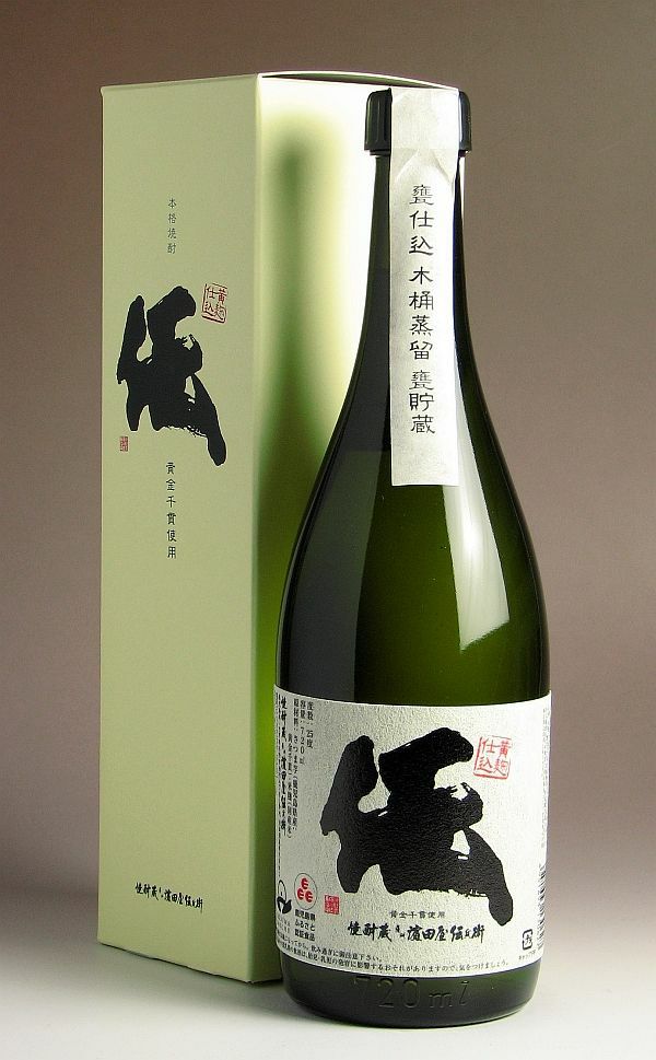●「伝(でん)」は、日本酒で使われている黄麹をもちい、カメ壺仕込み木桶蒸留器による蒸留、そしてカメ壺による長期の貯蔵熟成・・という伝統的な手法で手間と時間をかけて醸された熟成焼酎です。