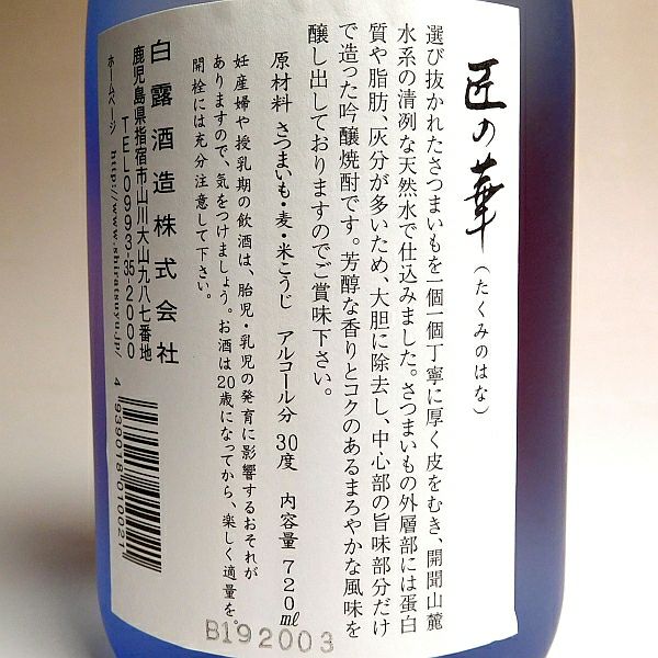 匠の華 30度720ml【白露酒造】《芋焼酎》たくみのはな