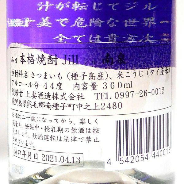 ジル Jill 南泉 ハナタレ 44度360ml 【上妻酒造】《芋焼酎》