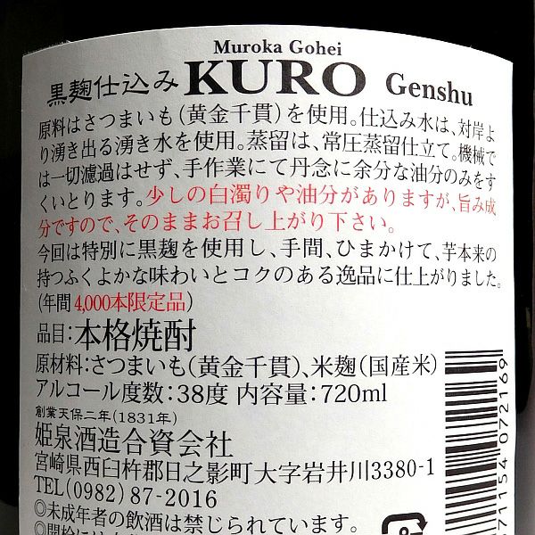 無濾過 御幣 黒 原酒 38度720ml 【姫泉酒造】《芋焼酎》
