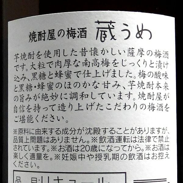 焼酎屋の梅酒 蔵うめ 14度720ml 【薩摩酒造】《梅酒》