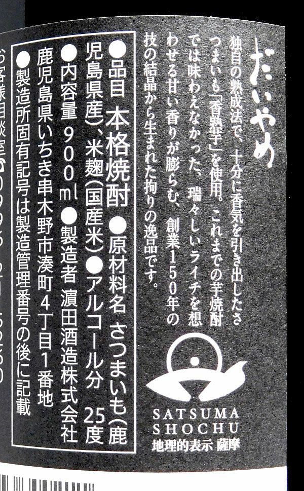 DAIYAME(だいやめ)25度900ml 【濱田酒造】《芋焼酎》