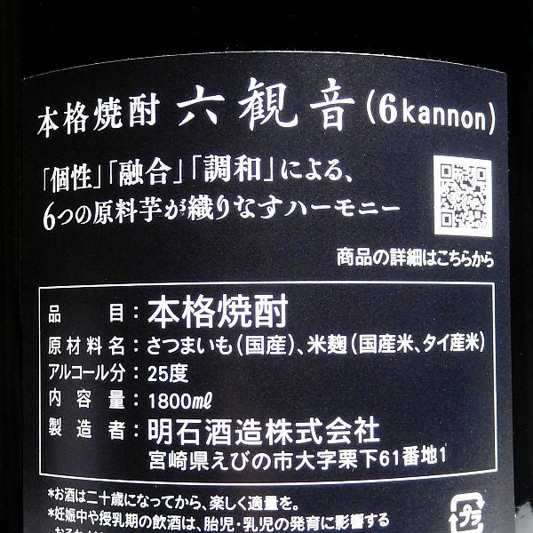 六観音(6Kannon)25度1800ml 【明石酒造】《芋焼酎》