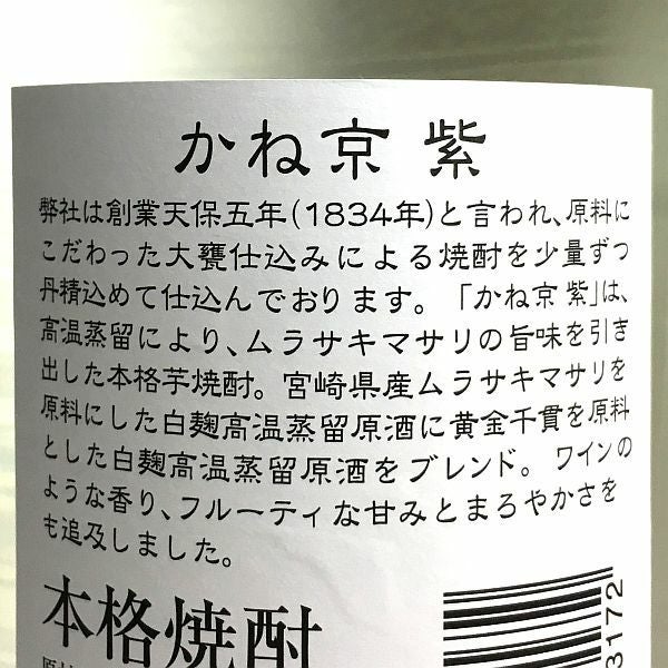 かね京 紫 25度1800ml 【京屋酒造】《芋焼酎》