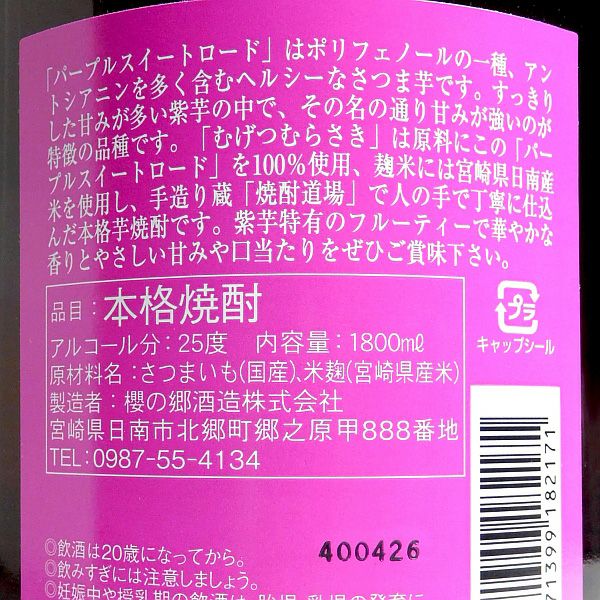 むげつ むらさき25度1800ml 【櫻の郷酒造】《芋焼酎》